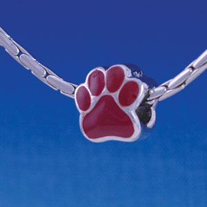 B1114 tlf - Large Maroon Paw - 2 Sided - Im. Rhodium Plated Large Hole Beads
