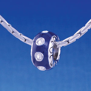 B1162 tlf - Large Spacer - Navy Blue with Swarovski Crystals - Im. Rhodium Plated Large Hole Bead