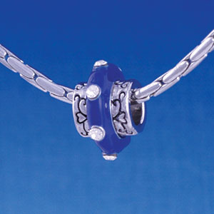 B1172 tlf - Large Spacer - Royal Blue Center with Clear Swarovski Crystals - Im. Rhodium Plated Large Hole Bead