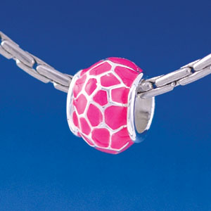 B1317 tlf - Hot Pink Giraffe Print - Silver Plated Large Hole Bead