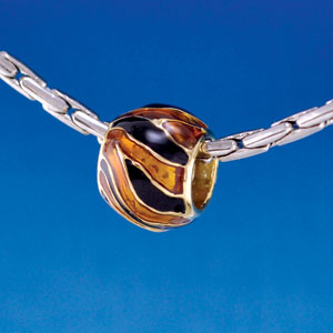 B1378 tlf - Black and Brown Animal Striped Print - Gold Plated Large Hole Bead - approx. 11x3x11mm (HxWxD) - Hole Size 5.8mm - Imitation Rhodium plated large hole bead
