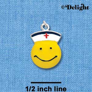 C1053 tlf - Smiley Face Nurse - Silver Plated Charm