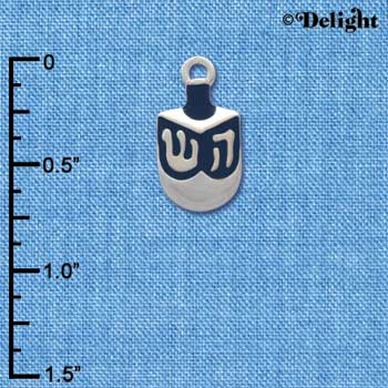 C1229 ctlf - Dreidl - Blue - Silver Plated Charm