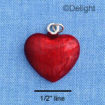 C1270 - Small Translucent Red Puffy Heart - Silver Plated Charm