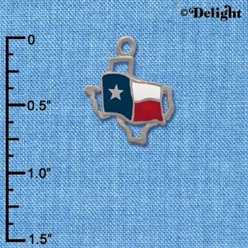 C1434 tlf - Texas Outline with Flag - Im. Rhodium Plated Charm