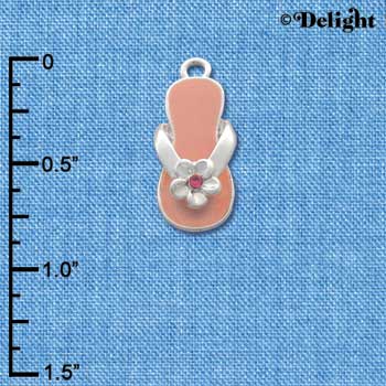 C2040 - Pink Flip Flop with Crystal Flower - Silver Plated Charm