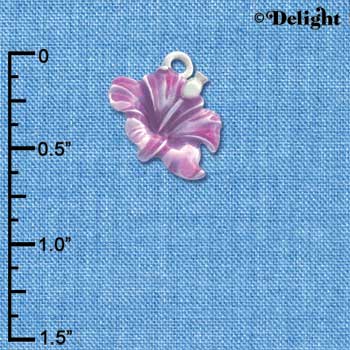 C2438-6 ctlf - Purple Hibiscus Flower - Silver Plated Charm (6 per package)