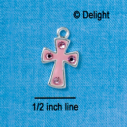 C2751 - Pink Cross with 4 Pink Stones - Silver Charm
