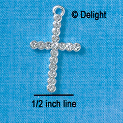 C2756 - Thin Cross with Crystal Stones - Silver Plated Charm