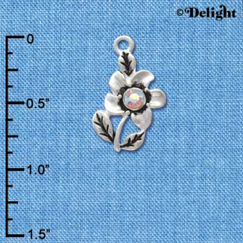 C2968+ - Silver Flower with AB Swarovski Crystal - 2 Sided - Silver Charm