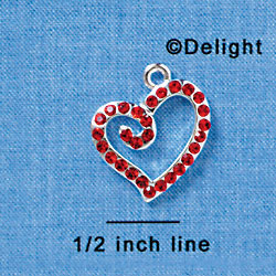 C3141 - Red Swarovski Curled Heart - Silver Plated Charm (Left or Right)