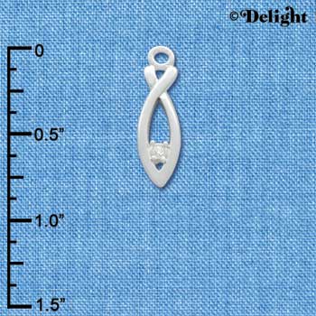 C3448 - Christian Fish with 1 Clear Swarovski Crystal - Silver Charm