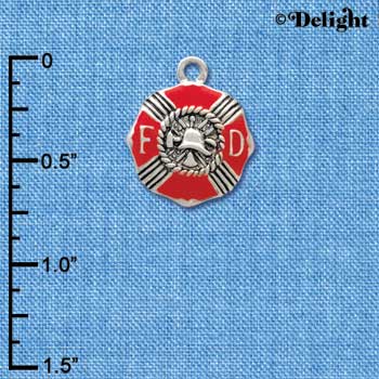 C3560 tlf - Red Enamel Fire Department Medallion - Silver Charm