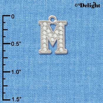 C3715 tlf - Swarovski Crystal - M - Initial - Beaded Border - Silver Plated Charm