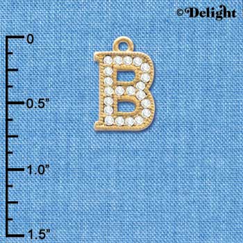 C3837 tlf - Swarovski Crystal - B - Beaded Border - Gold Charm