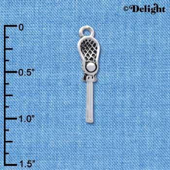 C4042+ tlf - 3-D Lacrosse Stick and Ball - Silver Plated Charm - Imitation Rhodium Plated Charms