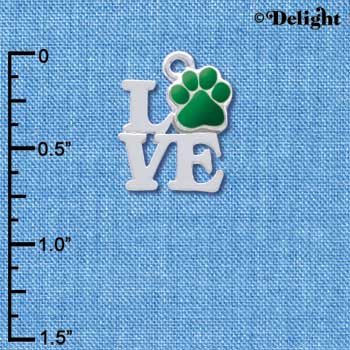 C4049 tlf - Silver Love with Green Paw - Silver Plated Charm