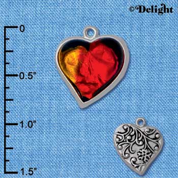 C3154 - Red Enamel Heart with Silver Textured Wings - Silver Plated Charm - Silver-plated, hand enameled charms.