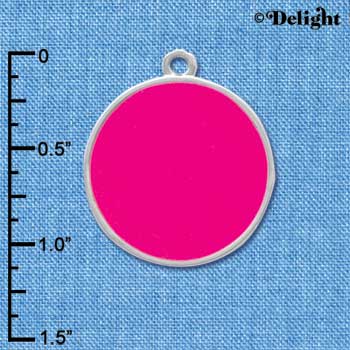 C4132 tlf - 1" Hot Pink Enamel Disc - Silver Plated Charm - Silver Plated Charms