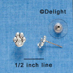 F1127 tlf - Mini Silver Paw with Clear Swarovski Crystal - Post Earrings (1 pair per package)