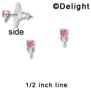F1232 - Small 3.3mm Hot Pink Swarovski Crystal with Loop - Post Earrings