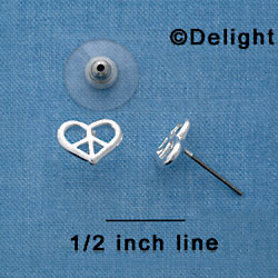 F1343 tlf - Mini Silver Heart Peace Sign - Post Earrings (1 pair per package)