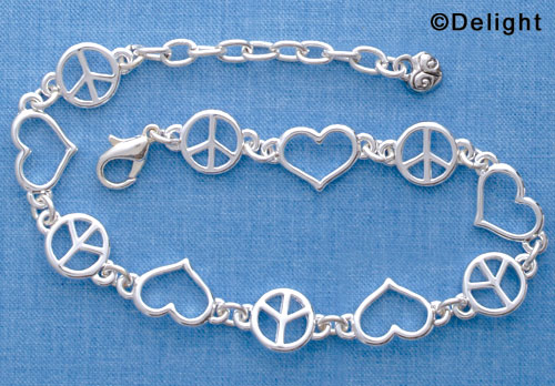 F1414 tlf - 6.5"+1.5" Heart & Peace Link - Silver Plated Bracelet