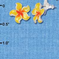 F1237 tlf - Yellow & Orange Plumeria Flower - Post Earrings (1 Pair per package)