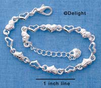 F1327 tlf - Mini Scroll Heart & Open Heart Silver Plated Charm Bracelet (7"+2")