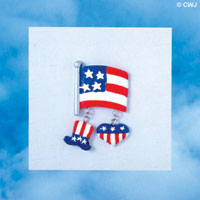 PIN-8153 - USA Flag Charm Pin with dangling Uncle Sam Hat, and Heart Charms