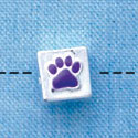 B1088 tlf - 6mm Cube with Purple Enamel Paw - Silver Plated Bead