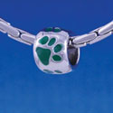 B1126 tlf - Silver Bead with Green Paw Prints - Im. Rhodium Plated Large Hole Beads