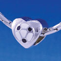 B1129 tlf - Large Silver Paw in Heart - 2 Sided - Im. Rhodium Plated Large Hole Beads
