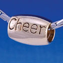 B1204 tlf - Smooth SilverBarrel Bead - "Cheer" - Im. Rhodium Plated Large Hole Bead