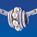 B1390 tlf - Large Gold Bullets on Silver - Im. Rhodium & Gold Plated Large Hole Bead