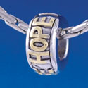 B1399 tlf - Gold "Hope" on Silver - Im. Rhodium & Gold Plated Large Hole Bead