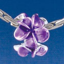 B1457 tlf - Purple Plumerias - Silver Plated Large Hole Beads
