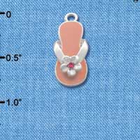 C2040-6 - Pink Flip Flop with Crystal Flower - Silver Plated Charm (6 per package)