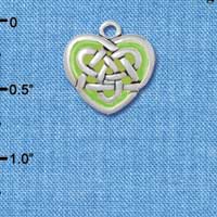 C2964 ctlf - Silver Celtic Knot Heart with Green Resin - Silver Plated Charm