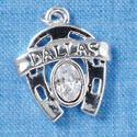 C3045 - "Dallas" Outline Texas with Large Clear Swarovski Crystal Stone - Silver Plated Charm