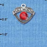 C3042 - "Fort Worth" Outline Texas with Large Red Swarovski Crystal Stone - Silver Plated Charm