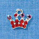 C3153 - Red Crystal Swarovski Crown with Red AB Crystal Accents - Silver Plated Charm