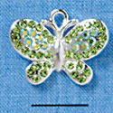 C3172 - Peridot Green Swarovski Crystal Butterfly with Peridot AB Accents - Silver Plated Charm