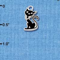 C3537 tlf - Black Sitting Cat - Silver Plated Charm