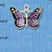 C3548 tlf - Large Purple Butterfly with 6 AB Swarovski Crystals - Silver Plated Charm