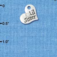 C3557 tlf - Large "Lil Sister" Heart with Clear Swarovski Crystal - Silver Plated Charm