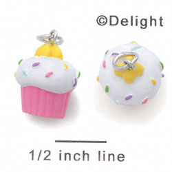 N1117+ tlf - Mini White Cupcake with Pink Frosting - 3-D Hand Painted Resin Charm - 3 Dimensional hand painted resin charm