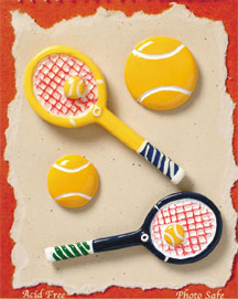 S1008-6 - Tennis - Flat Backed Resin Scrapbook Embellishment Set (6 cards per package)